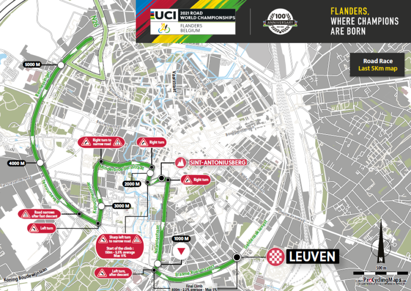 Last 3 or 5km maps compliant with UCI regulations (main dangers, slopes)